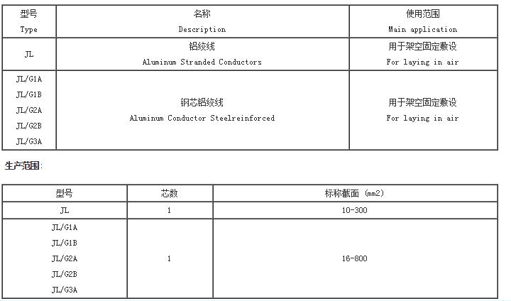本產品適用于架空電力線路。產品執(zhí)行GB/T1179-1999《圓線同心絞架空導線》標準。